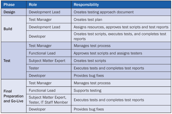 Siemens also ensures that everyone involved in testing is aware of his or her responsibilities. One of the key tasks of the project manager is to define and communicate roles and responsibilities so that role owners clearly understand expectations and timelines, says Sharp. “If people are not completely sure what their responsibilities are then there’s a good chance the tests are not going to get done. It’s a two-way street to make sure both the project management and project team are on the same page in terms of expectations.”