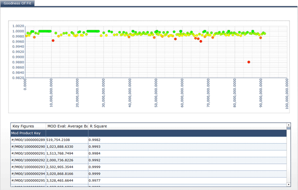 Our final product is an Xcelsius dashboard showing some critical system parameters that we analyze to determine a Goodness of Fit for our modeling engine (Figure 10). This allows analysts implementing or using Price Optimization for Banking to determine what parameters may require tuning.
