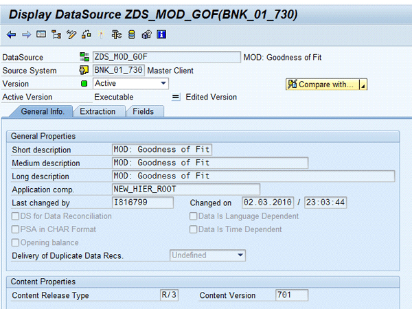 After creating your DataSource, you should now see the Display DataSource view shown in Figure 2. Use the default SAP NetWeaver BW Source System (Master Client), which should already be defined.