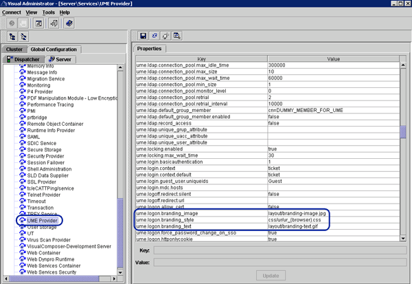 Branding image parameters in UME Service from Visual Administrator