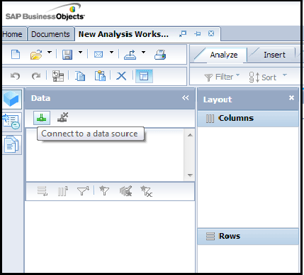 Let’s say you want to connect to an existing BW query in one of your BW systems. Launch the BusinessObjects BI Launch Pad and run Analysis, edition for OLAP. You now need to identify and access the BW query. To do so, click the connect to a data source icon