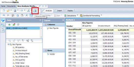 The print-to-PDF function is not specific to Analysis, edition for OLAP, but instead is a feature of the BI launch pad’s user interface.