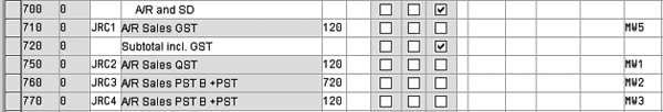“Plants Abroad Eases Country-Specific Tax Reporting.” Copy the section of the tax procedure relating to the type of tax that you’ll use. To do this, hold down the Ctrl key and press Y until the cursor becomes a cross sign, then hold down the Ctrl key and press C. For example, I have copied A/R and SD GST (goods and services tax for Canada) and QST (Quebec sales tax) (Figure 2).