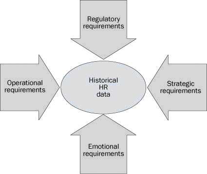 You need to identify specific requirements based on the four forces described above when you plan your strategy for managing historical data. I will discuss a few sample requirements, but companies need to develop a detailed requirements matrix for their unique initiatives. Using my example, you can separate the emotional requirements from the necessary requirements.