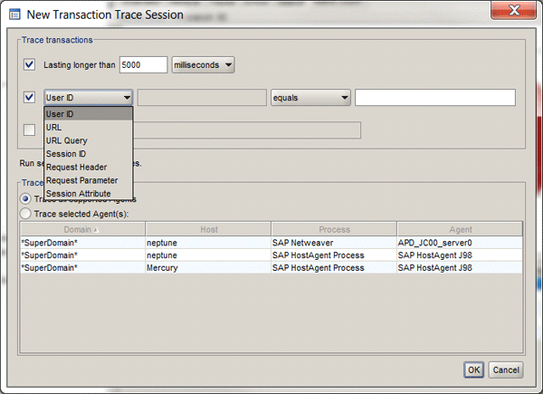 To get to the Transaction Tracer View, follow menu path Workstation > New Transaction Trace session or press Ctrl-3. This view allows you to isolate individual problematic transactions and instantly identify which components are causing performance degradation (Figure 16). All monitored transactions are stored in the SmartStor database for future analysis.