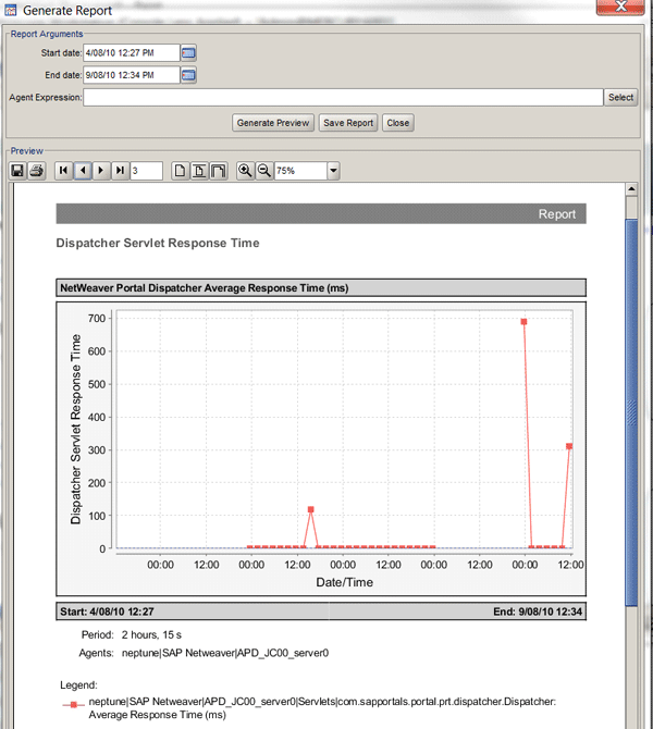On the basis of what you see in the dashboards, you may wish to generate a Wily report. There are four SAP-supplied report templates for creating performance reports covering the dates and agents of your choice: