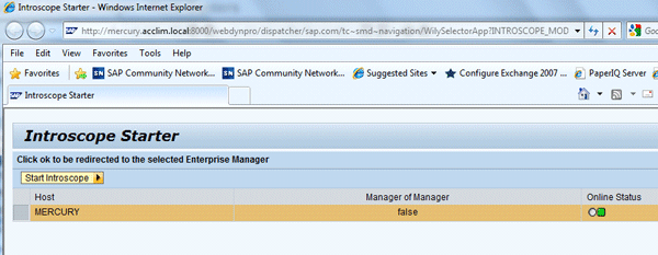 Introscope Starter screen