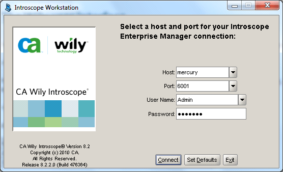 After you install the Wily user interface, log on with the default credentials shown in Table 1 to access the Wily EM.
