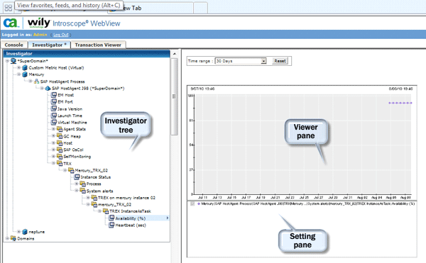 - Investigator tree: provides a tree hierarchy view of domains and metrics