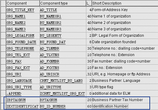 In the screen that appears, create an append structure to structure CRMT_MKTLIST_ORG_EXT using the information shown in Table 1. When you activate the new append structure by clicking on the activate icon CRMT_MKTLIST_ORG_EXT should look as shown in Figure 1.