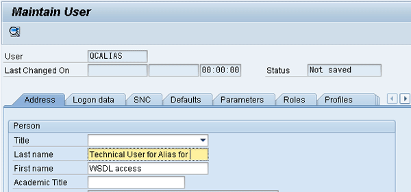 Copy the role SAP_QC_WSDL_ACCESS that is already in the Roles tab. It is automatically assigned to the user you created. Ensure that the profile for this role is generated and save your work (Figure 17). You have now successfully set up the technical user for alias.