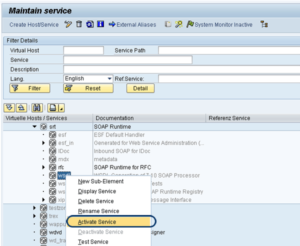 To activate the WSDL service or check whether it is already active, do the following: