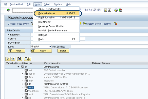 - External Alias: /sap/bc/srt/wsdl