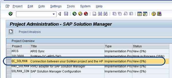 Follow menu path SAP Solution Manager > Scenario-Specific Settings > Third Party Integration > SAP Quality Center by HP > Integration Test Management and click Connection to HP Quality Center. Select the SAP Solution Manager project by double-clicking the project’s name (Figure 31).