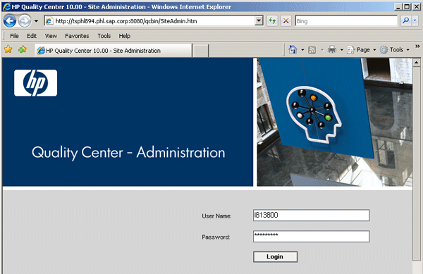 SAP Quality Center by HP administrator login page