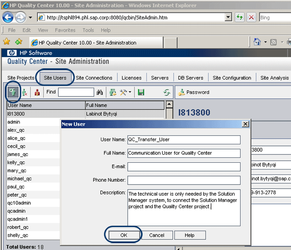 Set up the communication user for SAP Quality Center