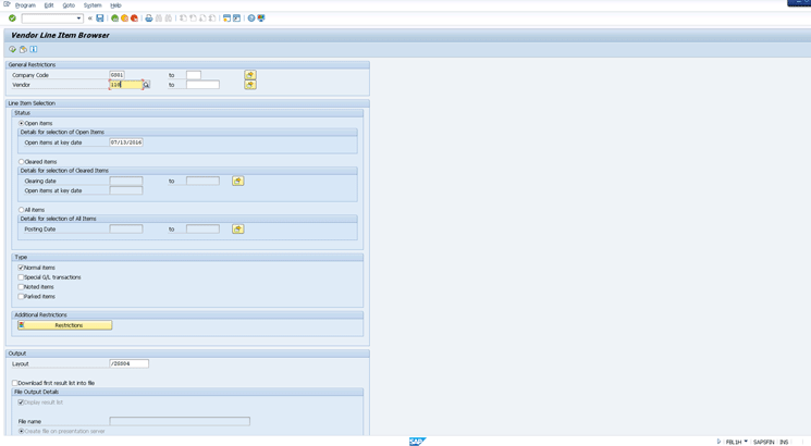 I do not cover each field. My purpose is to explain that there are more selection criteria available. For example, now the line item browser supports search string *4000* (including the ‘*’) for the document line item text. With this selection the line item browser output would only display data that has the phrase 4000 in the line item text.
