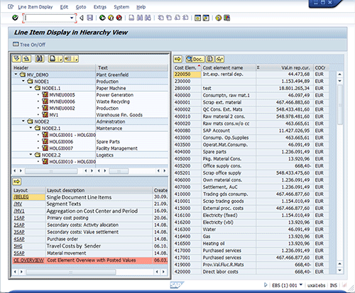 Line-item browsers are available for accounting in the classic and SAP General Ledger, for profit-center accounting, for overhead management, projects, and for vendor and customer account reporting.