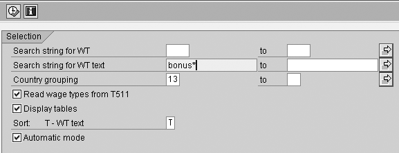 Automatic mode also displays the infotypes to which the wage types have been assigned. After selecting the automatic mode, below each wage type you see the infotypes on which you can input the wage type. If you choose not to select this, after the report is run you need to place the cursor on the wage type and select the infotype button at the top of the report.