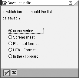 To save the output to Microsoft Excel, use menu path System>List>Save>Local File. You may want to record this in Excel for further manipulation or distribution to other people in your organization.