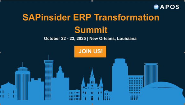 APOS is looking forward to joining the SAP community in New Orleans at SAPinsider ERP Transformation Summit as a proud sponsor. Join us for a collaboration session on “Generating & Delivering Personalized Financial & Operational Reports on Multiple Platforms”  in our booth at 10:05 Oct 22.  Finance and operations teams modernizing their SAP Analytics and financial reporting want to streamline, automate and optimize financial reporting processes. APOS Publisher for Cloud enables powerful data-driven, automated report scheduling and broadcasting for SAC, Analysis for Office, Power BI, Looker and Tableau reports. Join this session to understand how APOS Publisher can streamline your financial and operational reporting. Be sure to stop by the APOS booth anytime for a chat about high-volume, personalized report broadcasting!
