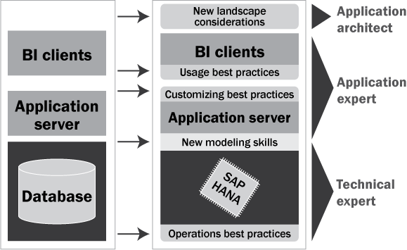 We’ll break up the description of the new skills into three sections as we see the following three expert profiles primarily affected by the introduction of SAP HANA (Figure 1):