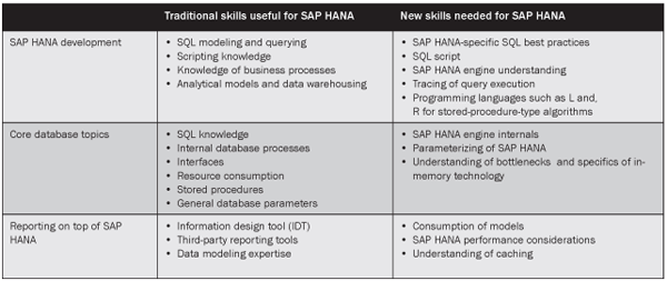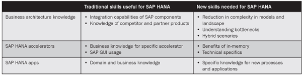 Nowadays, an application expert is confronted with a wide range of new tools and technologies playing an important role in the daily application implementation and configuration tasks. Traditional application knowledge provides a huge asset but has to be complemented with in-memory focused best practices to help application experts leverage the new technology. Table 2 highlights the important skills for an application expert in the SAP HANA space.