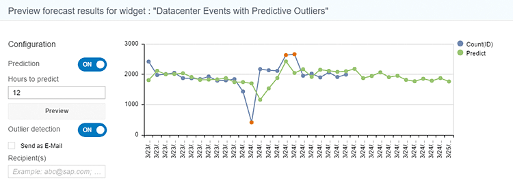 Out-of-the-box predictive forecasting offered by SAP IT Operations Analytics can also help IT teams run scripts and automate processes, which can save time and reduce errors. Built on the SAP HANA platform, SAP IT Operations Analytics uses the Predictive Analysis Library delivered with SAP HANA to provide predictive forecasting at the flip of a switch (or slide of a toggle). With an intuitive interface, it’s easy to use even for new users to quickly begin forecasting (see