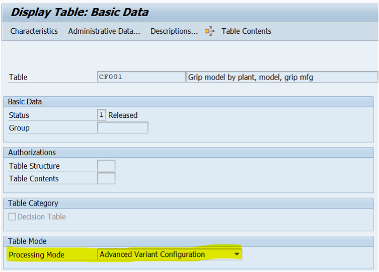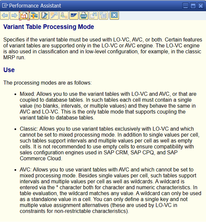 When working with variant tables in AVC, users must specify a processing mode—Classic, Mixed, or AVC—which determines how the table is evaluated during configuration.