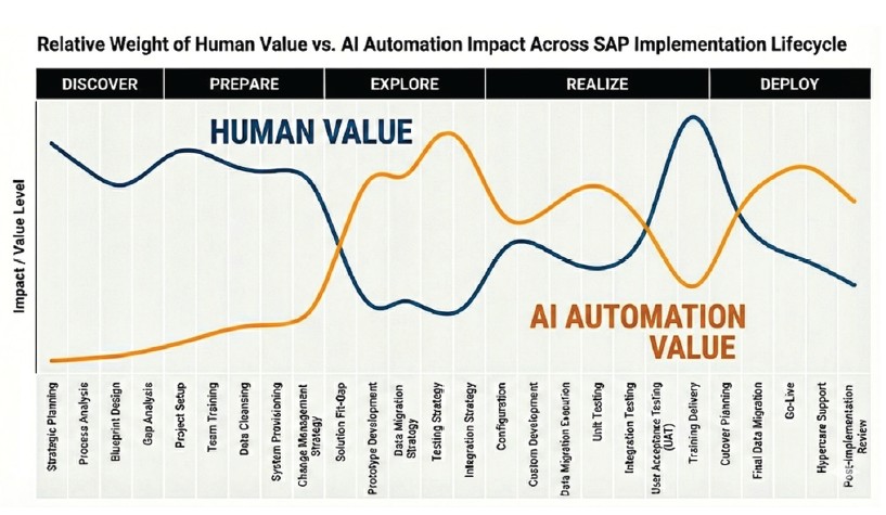 By optimizing the implementation lifecycle into distinct work categories—human-driven, human-led with AI support, and AI-led with human curation—companies can enhance efficiency and streamline processes without sacrificing the rigor needed for validation and control, benefitting SAP consultants and stakeholders.