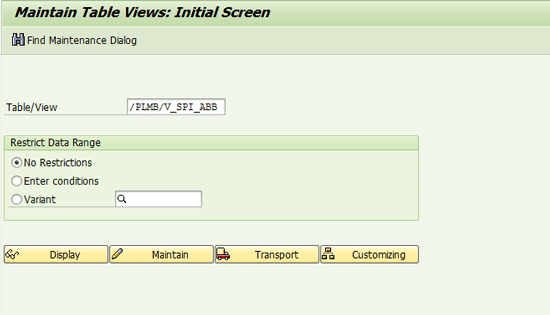 Enter the view /PLMB/V_SPI_ABB