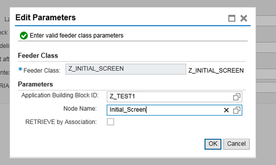 Enter the application building block ID (i.e., Z_TEST1) and press Enter. Expand the Z_Test1. Click the Initial_Screen: Retrieve method at the right, which opens a pop-up to enter the input parameters as shown in