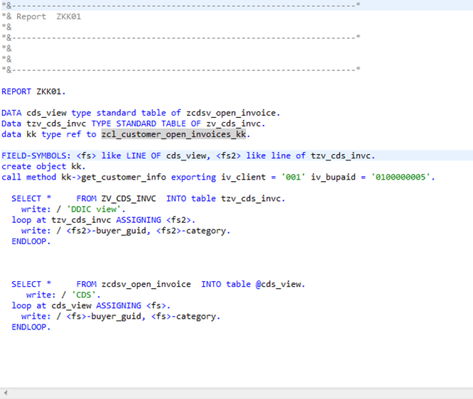 Figure 5 demonstrates how you can refer to CDS definitions in a custom ABAP report. All you have to do is define an internal table that is typed with the corresponding CDS view definition (in the example, the variable cds_view defined in the first line of the report). Retrieving data from the CDS view into the internal variable is done with a simple SELECT * from the CDS view (zcdsv_open_invoice) into the internal table, prefixed with the host variable indicator (@cds_view), as shown in the second SELECT statement.