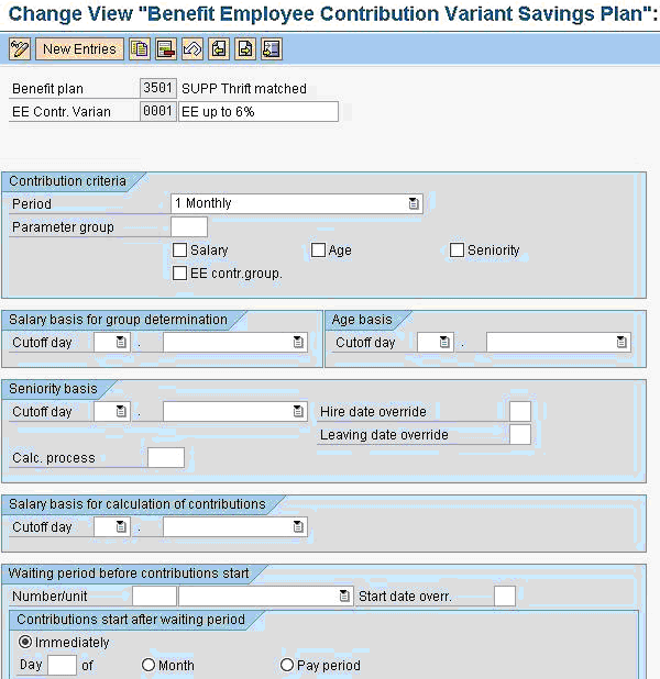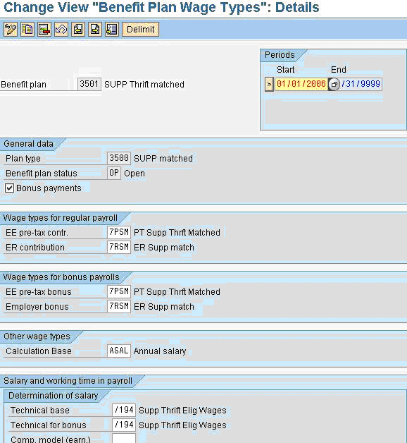 Learn the configuration of a special benefit plan, wage types, and a rule in payroll that makes contributions to a supplemental savings plan possible even in the middle of a pay period. Key Concept The US Internal Revenue Service prohibits contributions to a qualified savings plan from earnings that exceed the section 415 compensation limit….