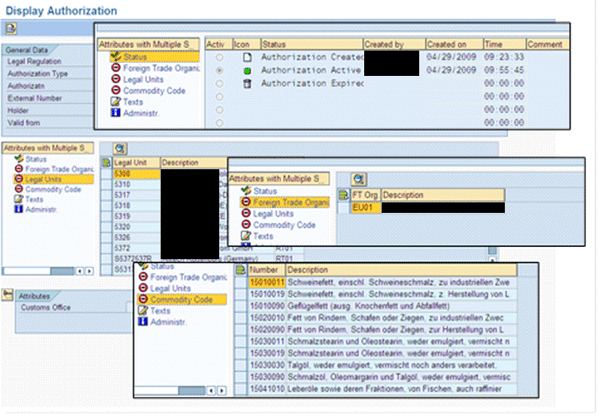 Figure 18 displays the authorization determined in the SAP BusinessObjects Global Trade Services customs declaration document.