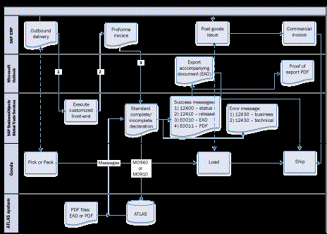 You can configure SAP BusinessObjects Global Trade Services to enable ATLAS for automating the German export declarations. The key steps in ATLAS declarations are:
