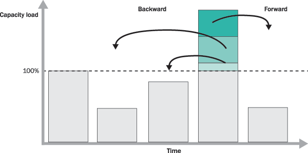 heuristic performs the capacity leveling backward or forward where the resource is overloaded (Figure 3).