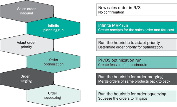 can use scheduling heuristics to sequence the orders on the resources. After you have the infinite plan, the scheduling