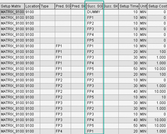 respecting the due dates to the customer. Prerequisite master data for this constraint is the setup matrix, which is a