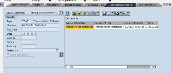 In the Documents/Evidence tab, you can store the reference number against which the import customs declaration is stored (Figure 10).