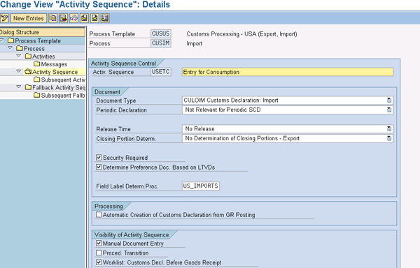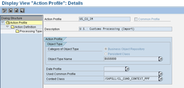 In this example, we have defined the action definitions CF 3461 for Immediate Entry and CF 7501 for Entry Summary. You can select one of the action definitions and click the Processing Type folder to see the details behind each action definition (Figure 49).