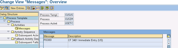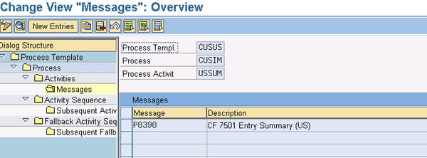 The process CUSIM captures the details of activities and messages defined for importing. While in the above configuration, select the process CUSIM and click the Activities folder to bring up the screen in Figure 51.