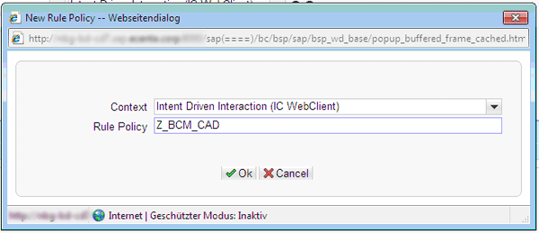 To create the relevant SAP CRM IDI rule, open the CRM WebClient UI using the corresponding link or with transaction CRM_UI in the SAP GUI. Log in and choose the business role IC_MANAGER. In the menu, go to Process Modeling > Rule Policies and click the New button in the results list. Because the rules lie within the IDI context, you should select the context Intent Driven Interaction (IC WebClient), which is another name for ICRULE mentioned above (Figure 6).