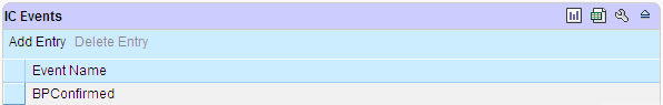 After entering a rule policy name in Figure 6, click the Ok button and you are directed to the Rule Policy Overview Screen. For our example, we created rule policy Z_BCM_CAD, which includes rules relevant for this scenario and other call center-relevant alerts and rules. To set up the rule policy, click the first line in the policy tree structure in the Rule Policy Overview containing the name of your rule policy. Enter the relevant business role you want to use the rules for in the Business Roles table (Figure 7). For our example, we added InteractionCenter Agent BCM. We also added the event BPConfirmed in the IC Events table (Figure 8). These entries are available later to define the IDI rules.