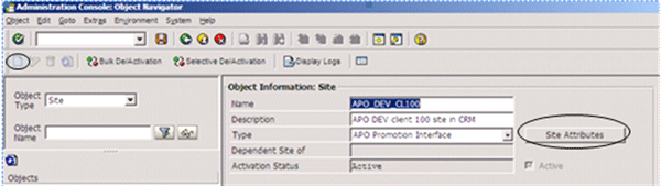 Step 1. To avoid errors later on, create a trusted remote function call (RFC) destination and a site for SAP APO in SAP CRM by using transaction SM59 in SAP CRM. Then create a site for SAP APO in CRM using transaction SMOEAC (Administration Console in CRM System). From the SAP Easy Access menu, follow Architecture and Technology > Middleware > Administration Console (SMOEAC).