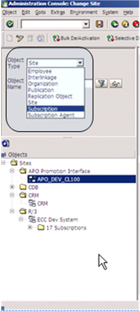 Step 2. Using the Subscription Wizard, create the Object Type Subscription for the site you just created (Figure 3). When creating the subscription, the only sites displayed for selection are those that allow a subscription to the selected publication. TPM has different technical object types, such as Site, Subscription, and Publication that are dependent on each other for the configuration. In this example case, you create the site for SAP APO, then a subscription for the site, and finally a publication. You can assign one or more sites to your subscription.