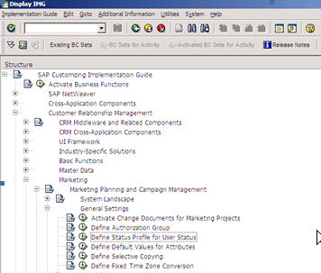Step 4. Define the status profile in SAP CRM customizing. Go to the IMG and follow menu path Customer Relationship Management > Marketing > Marketing Planning and Campaign Management > General Settings > Define Status Profile for User Status (Figure 5).