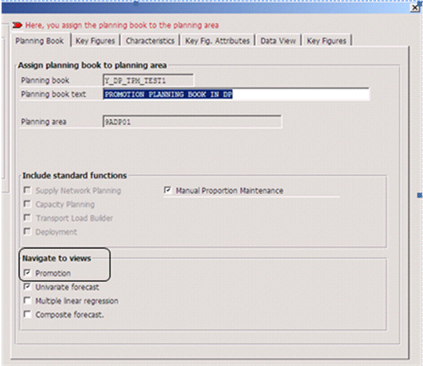 Step 7. Create a promotion planning book in DP. You already need to have created the DP planning area as a foundation when you create the promotion planning book. To create a DP planning book, follow menu path Advanced Planning and Optimization > Demand Planning > Environment > Current Settings > Define Planning Book or use transaction /SAP APO/SDP8B. In the screen that comes up, enter information such as the name of the planning book and the planning area you are using (Figure 8). Make sure the Promotion box is checked because you want to use promotion planning with this planning book.