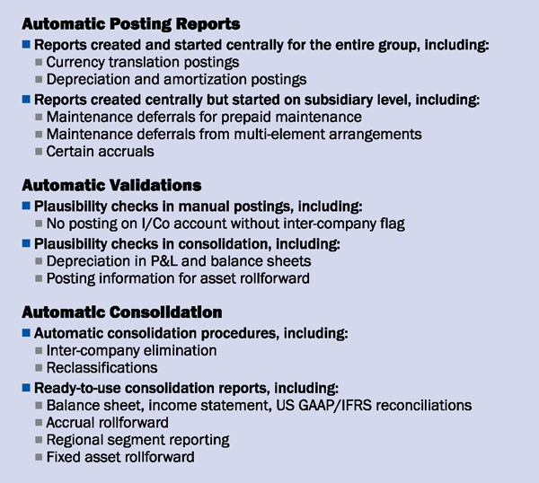 - Automation of certain standard US GAAP and IFRS differences, such as accounting for services revenues