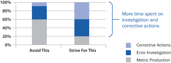 “Get your process automated so you’re not spending time creating your metrics,” he says. “Instead, spend as much of your time as possible on the value-add activities such as figuring out how a problem happened, and more importantly, how you are going to fix it in the future.”